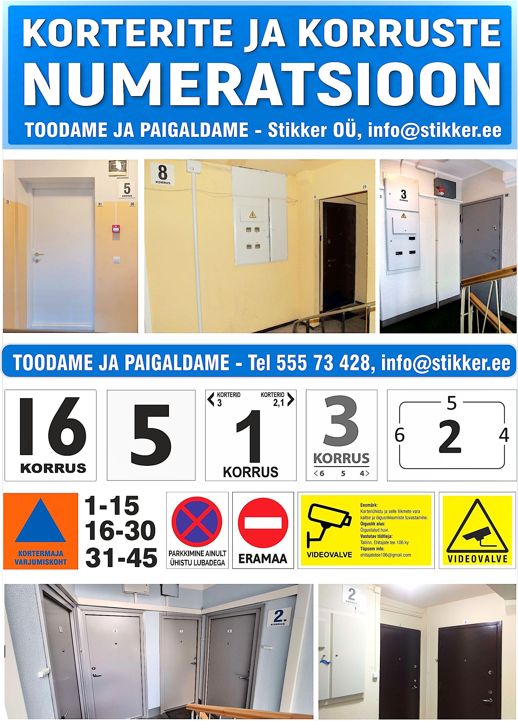 KÕIKIDE KORTERITE UKSED - tihti on korteriühistud korterite numbritega tähistamise pannud korteriomaniku kohustuseks, kuid praktikas pole korteriomanikud seda väga aktiivselt täitnud ja nummerdamata korterid tekitavad endiselt palju segadust nii kiirabi-, politsei- kui päästetöötajates.